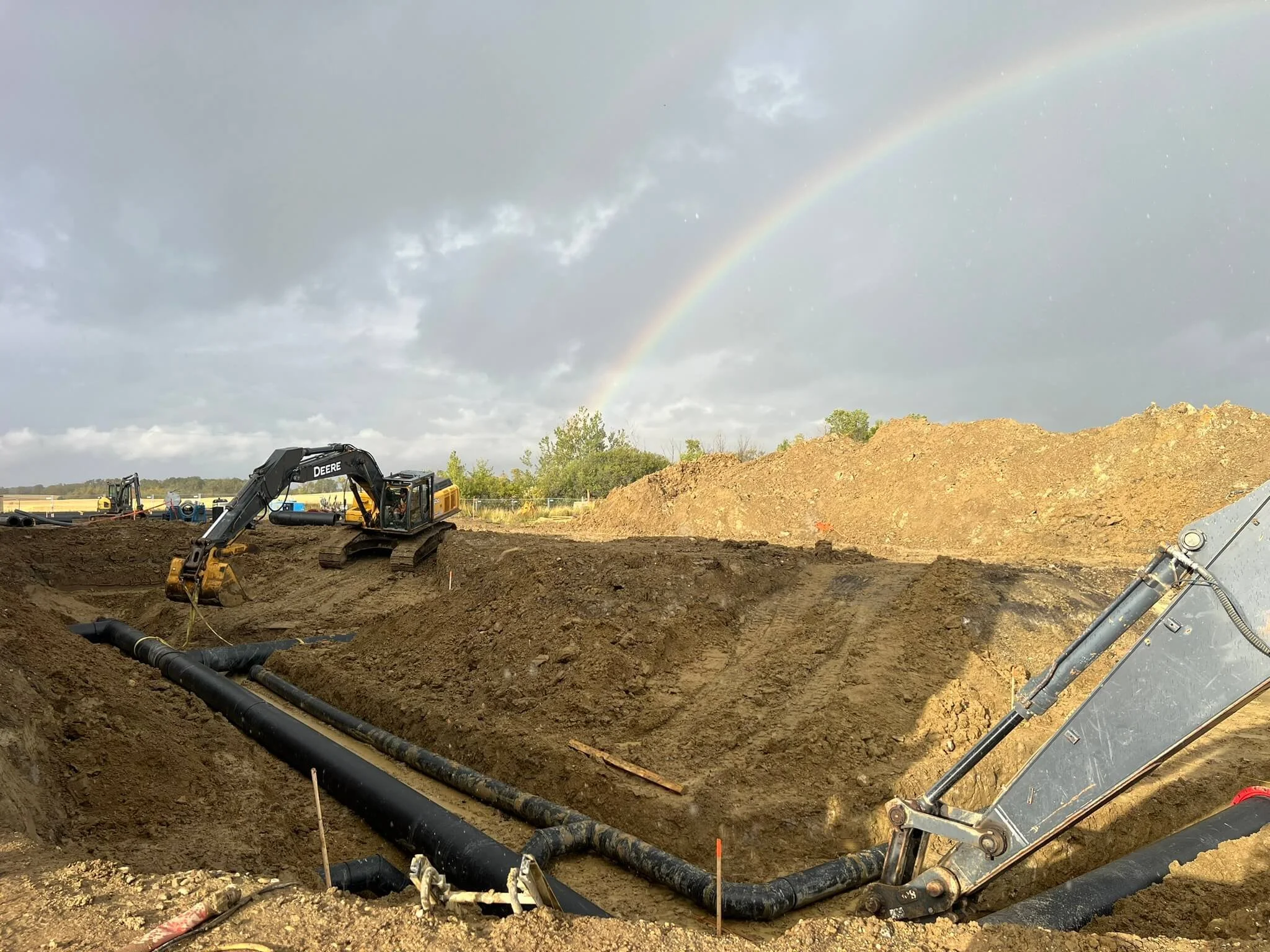 CN permits were acquired for 185m of smooth wall steel pipe ranging from 1,050mm to 1,500mm that was installed via open cut and auger bored construction methods through existing CN railways. 88m of 1.8m x 2.4m box culverts along with 850m of channel improvements through the Victoria drainage corridor were also completed as part of the project.